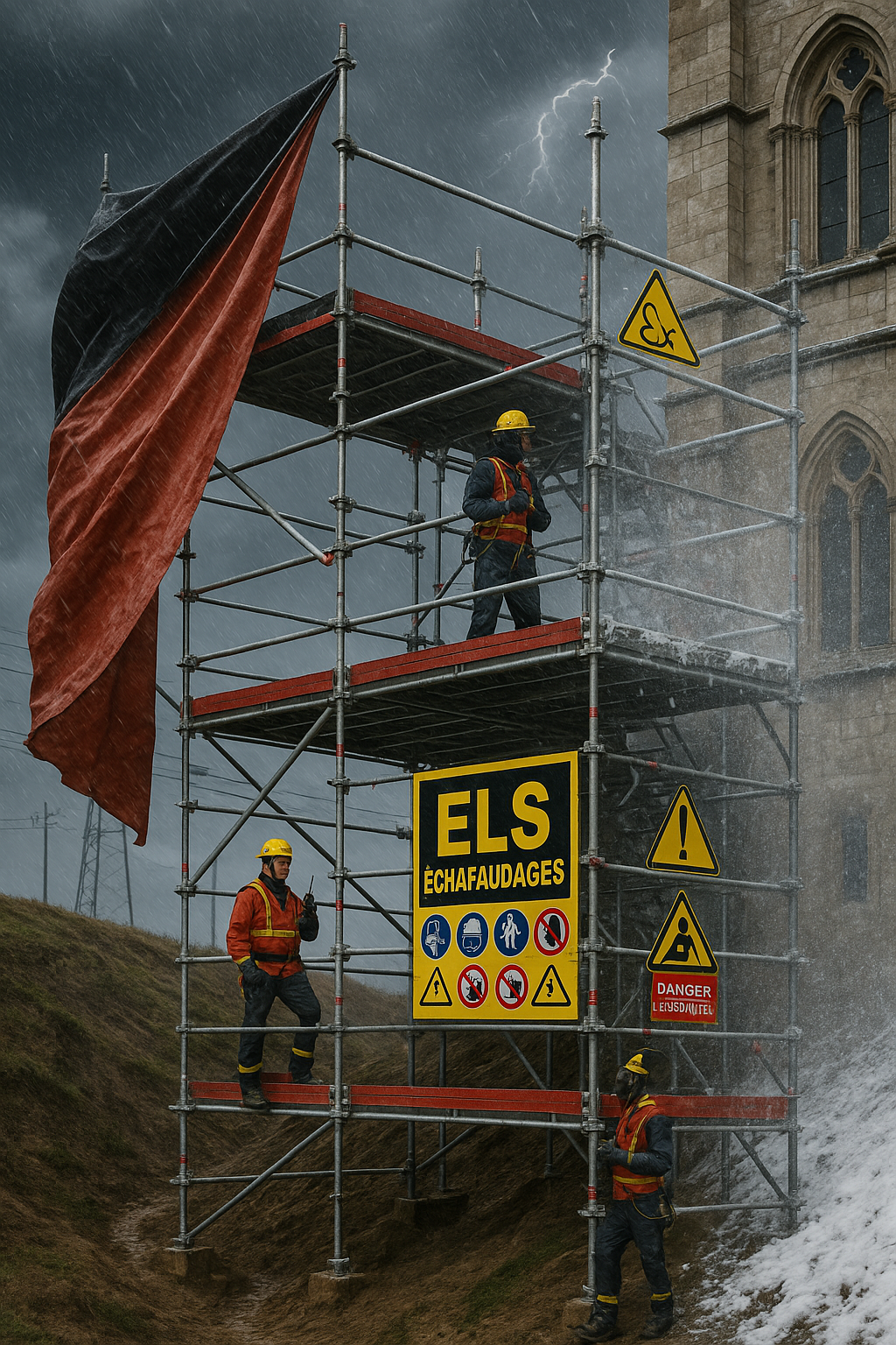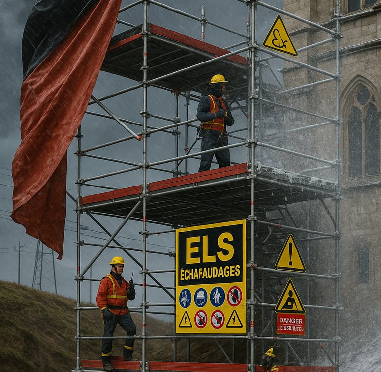 • Stabilité et portance du sol • Stabilité de l’échafaudage • Environnement du chantier • Fixations et ancrages • Conditions climatiques