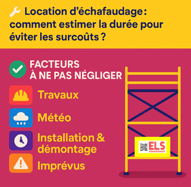 Estimer la bonne durée de location d’un échafaudage, c’est d’abord une question d’organisation. C’est aussi un moyen efficace d’optimiser ses ressources, d’éviter les retards et de garantir un déroulement fluide du chantier. En anticipant les facteurs clés et en s’appuyant sur des professionnels de confiance, vous vous assurez d’un projet maîtrisé du début à la fin.